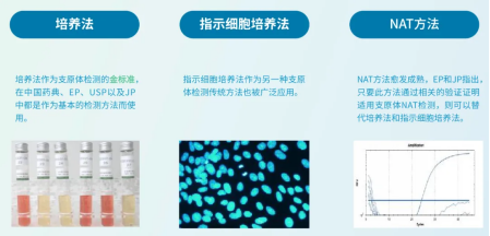 在此过程中,支原体污染的风险极其高。支原体的污染难以察觉,对生物制品生产质量影响极大,因此,各国药典和药品监管法规对生物制品生产中的支原体检查都作出了明确规定,如EP 2.6.7 MYCOPLASMAS,USP <63> MYCOPLASMA TESTS,《中国药典》3301 支原体检查法。