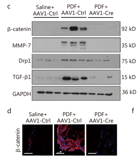 蛋白印迹和免疫荧光证实AAV1-Cre成功敲除β-连环蛋白